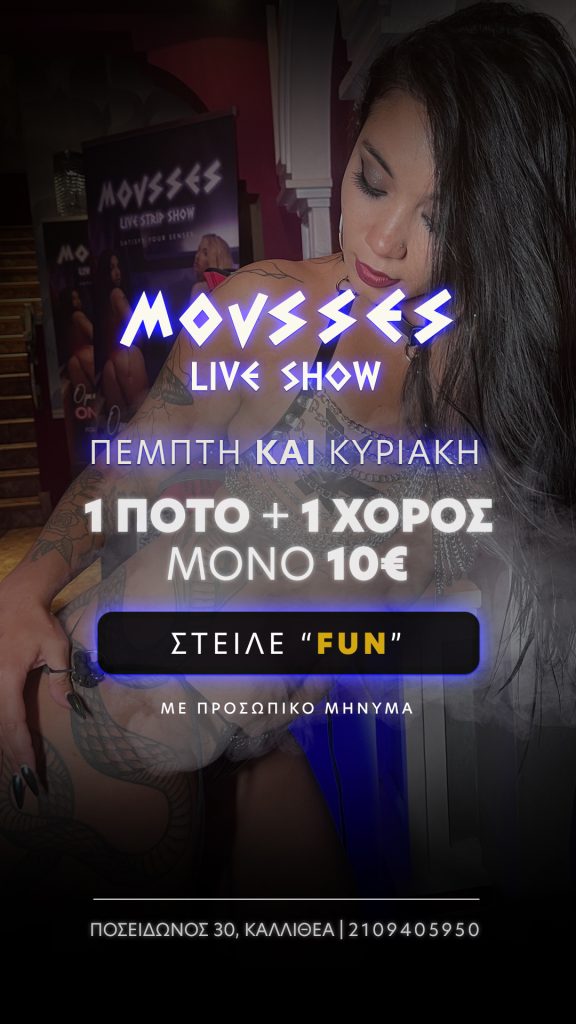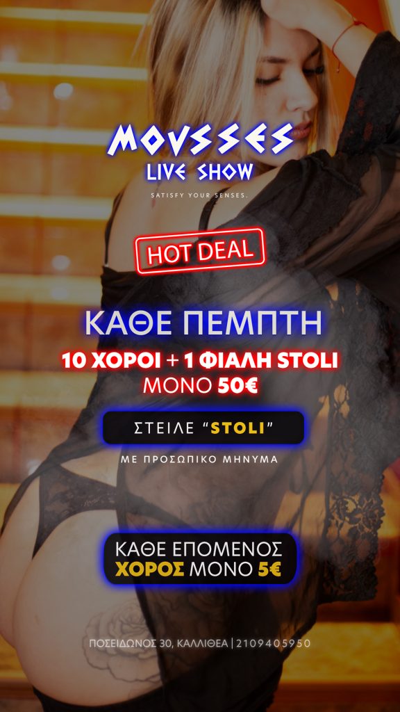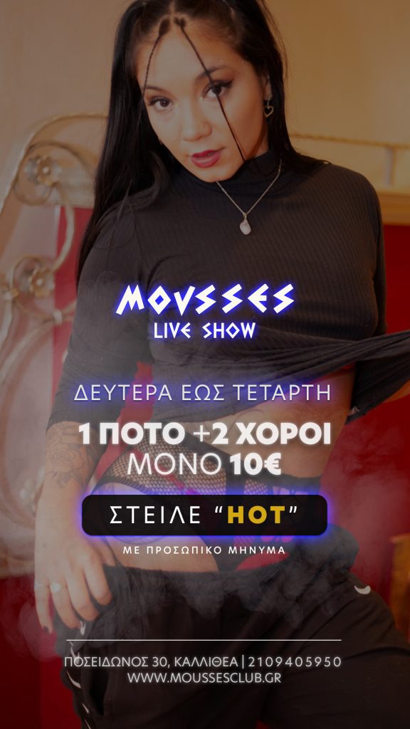 Το MOUSSES Strip Club είναι ένα από τα πιο γνωστά στριπτιτζάδικα στην Αθήνα με φανταστική ατμόσφαιρα, όμορφα κορίτσια, sexy strip shows και ένα διασκεδαστικό περιβάλλον φτιαγμένο για πάρτι!